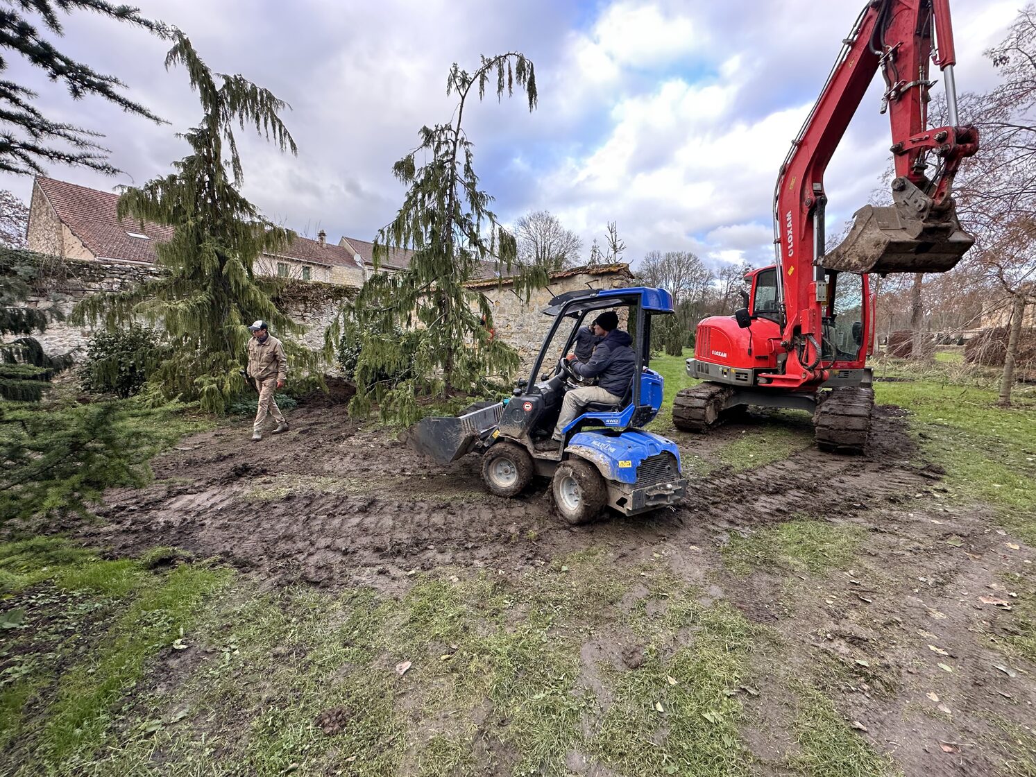 Technical works in garden