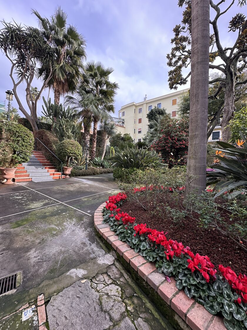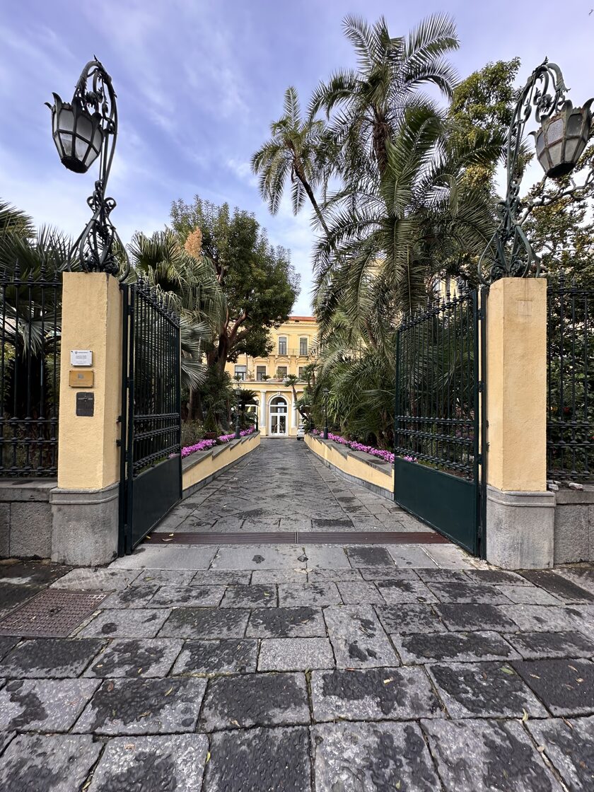 His son Guglielmo Tramontano expanded the business, moving it to Villa Nardi and later linking it with the adjacent Villa Strongoli Pignatelli, rebranding the establishment as Hotel Tramontano in 1857.